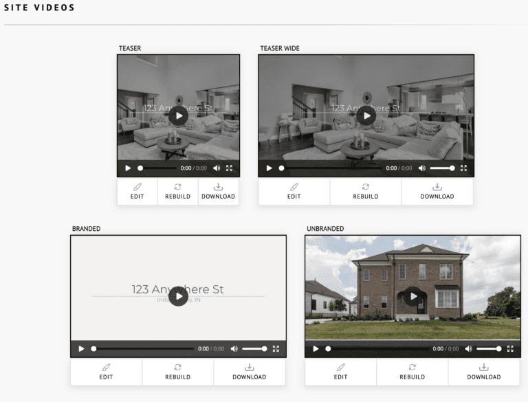 Teaser Videos Two shapes of teaser slideshow videos are pre-made and ready for you to download to your device within a few minutes of marketing kit activation. These teasers are approximately 25 seconds long and have the same music selected for the Property Site. Once you download the MP4 file to your device, you can upload it to your preferred social media site. You can also star/favorite images on the media page and they will show up first on these videos.